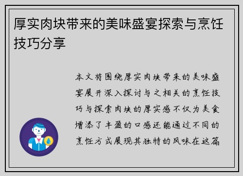 厚实肉块带来的美味盛宴探索与烹饪技巧分享